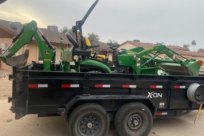 Must have own trailer and insurance to haul and can only haul 100 miles from pick up location. Multiple days rental discount of 10% and 15% for military. ONLY ONE DISCOUNT CAN BE APPLIED AT TIME OF RENTAL. Backhoe rental is also available for an extra charge.